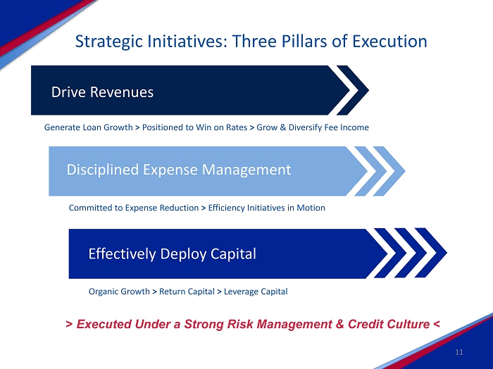Strong Capital Position CAPITAL TO EXECUTE STAYING POWER (1) Basel III became effective in 2015. (2) Adjusted Non - GAAP, See A ppendix for Reconciliation. 10