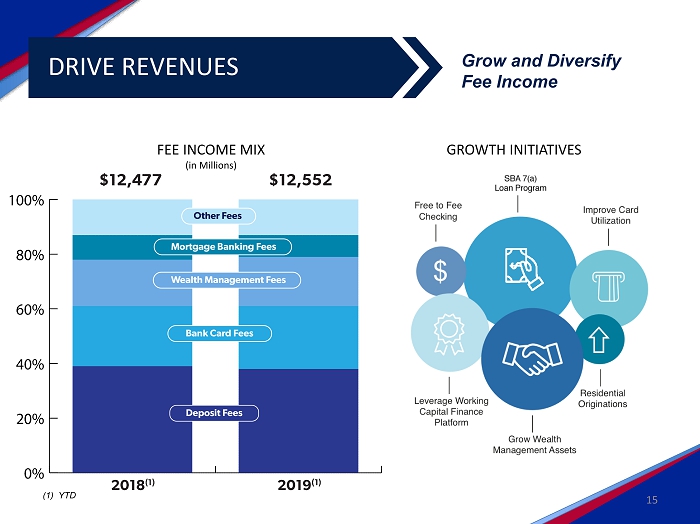 FEE INCOME MIX (in Millions) GROWTH INITIATIVES 15 DRIVE REVENUES Grow and Diversify Fee Income (1) YTD