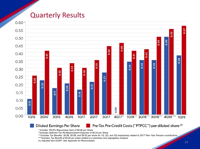 Quarterly Results 24 * Includes TRUPs Repurchase G ain of $0.09 per Share **Includes Deferred Tax Re - Measurement Expense of $0.24 per Share ***Includes Tax Benefits $0.09, $0.08, and $0.02 per share for 1Q, 2Q, and 3Q respectively related to 2017 Plan Year Pension co ntributions * ***Includes Tax Benefit of $0.02 per share related to a premises cost segregation analysis (1) Adjusted Non - GAAP; See A ppendix for Reconciliation